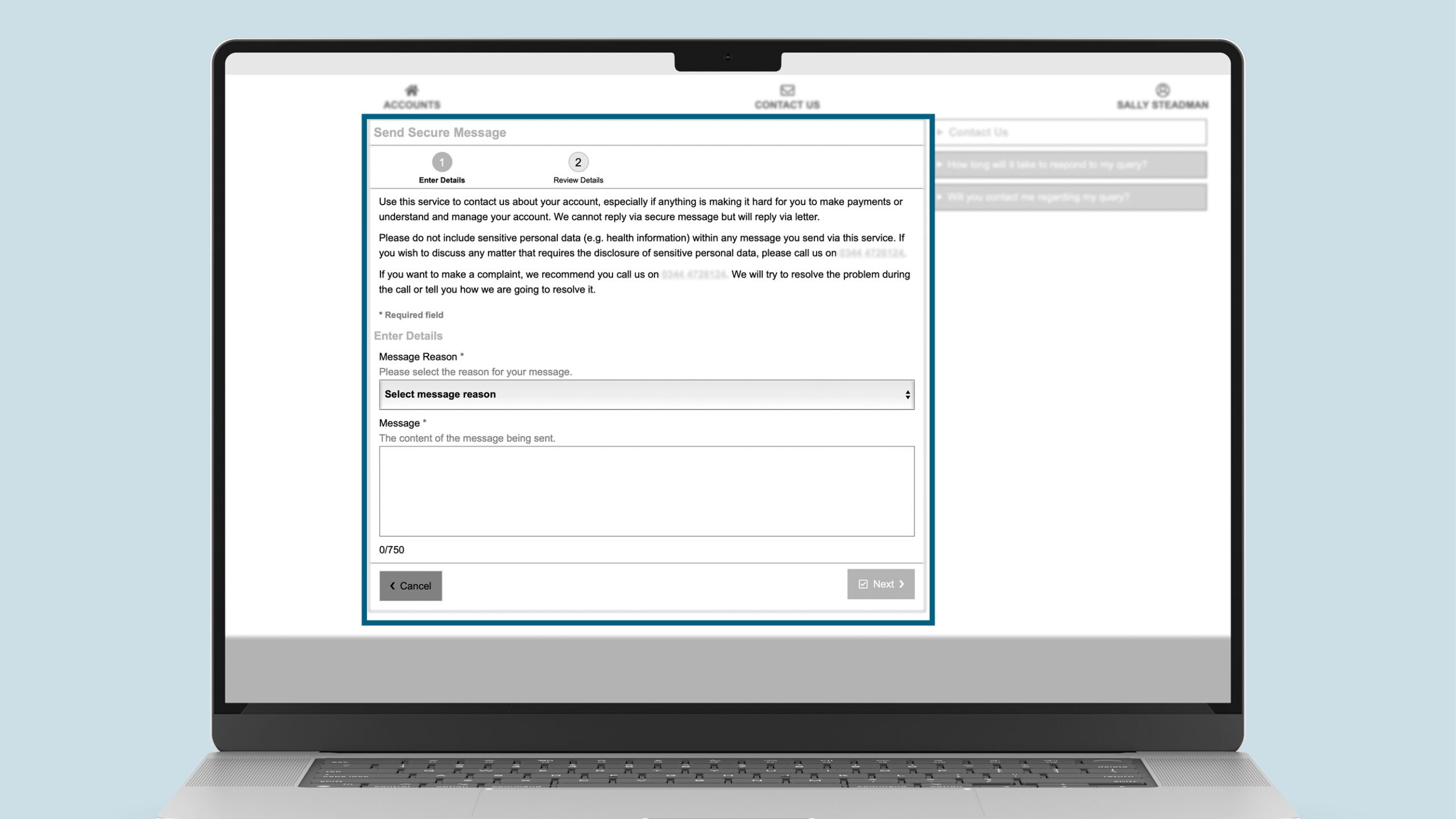 If your query isn’t urgent, it’s easy to sign in and send us a secure message about a wide variety of topics. If you need a response, we’ll aim to reply within two working days.