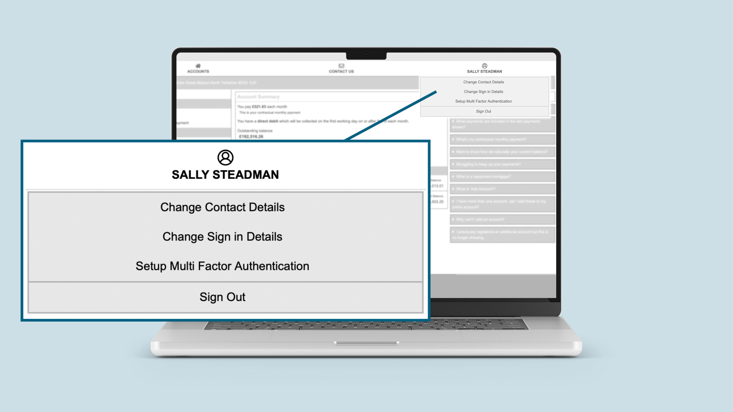 To see or change the correspondence address we’re using when we write to you about your account, simply click on your name in the top right of the screen, then click the Change Contact Details button in the pop-up menu.